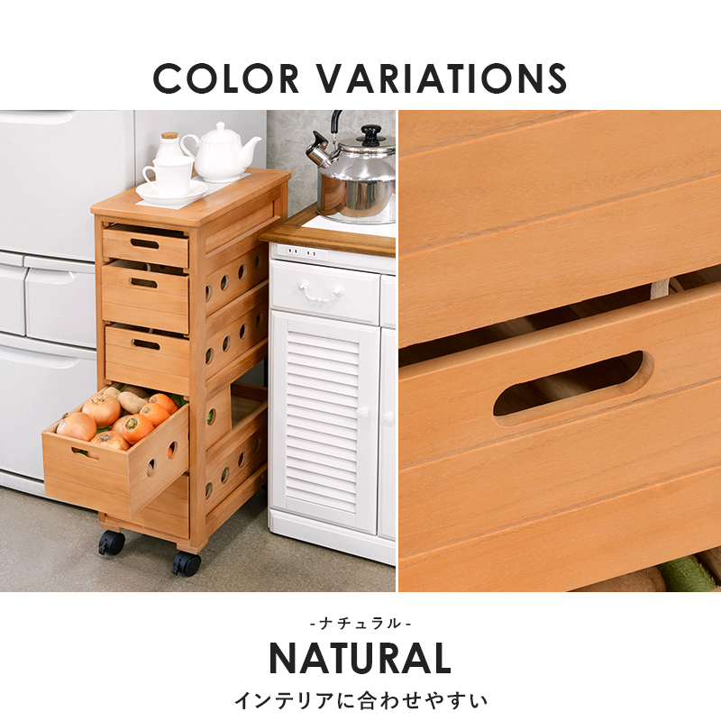 キッチンの食材収納に 木製 キッチンストッカー 幅27cm キャスター付き 完成品 スリム キッチンチェスト 引き出し 大容量 野菜収納ボックス