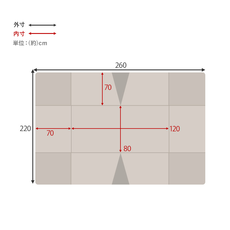 ■サイズ:(約)幅120×奥行80×高さ70cm