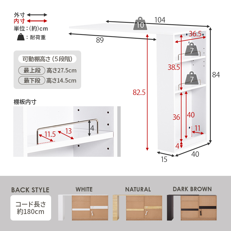 ■サイズ:(約)幅133〜207×奥行40×高さ84cm