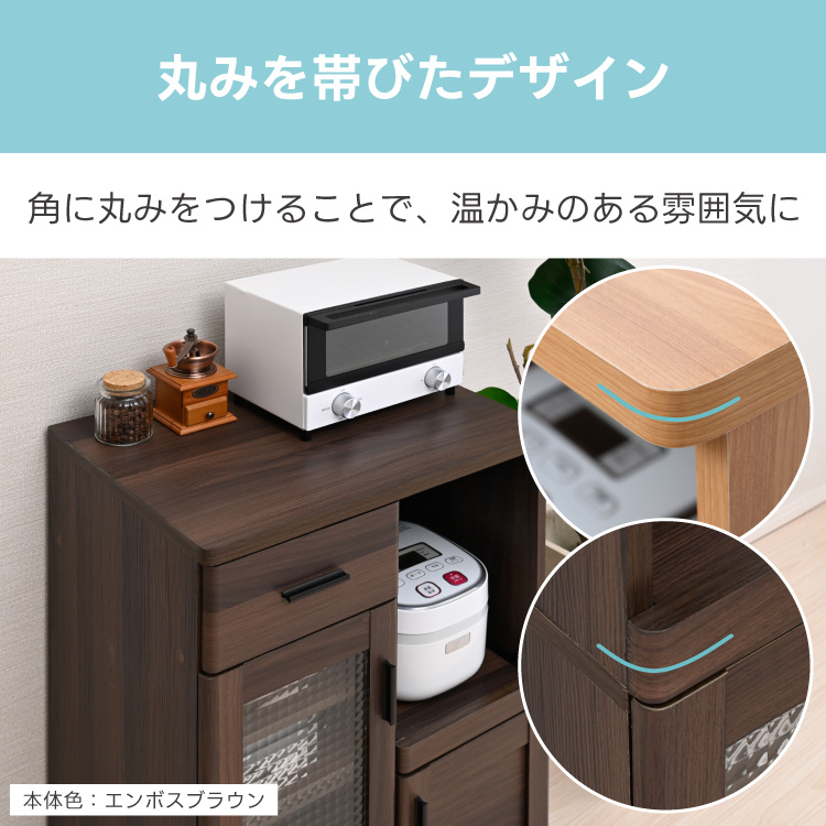 コンパクト キッチンカウンター レンジ台 幅60cm ロータイプ 間仕切り キャスター付き 収納 炊飯器ラック スリム 木製 北欧 ガラス扉 一人暮らし