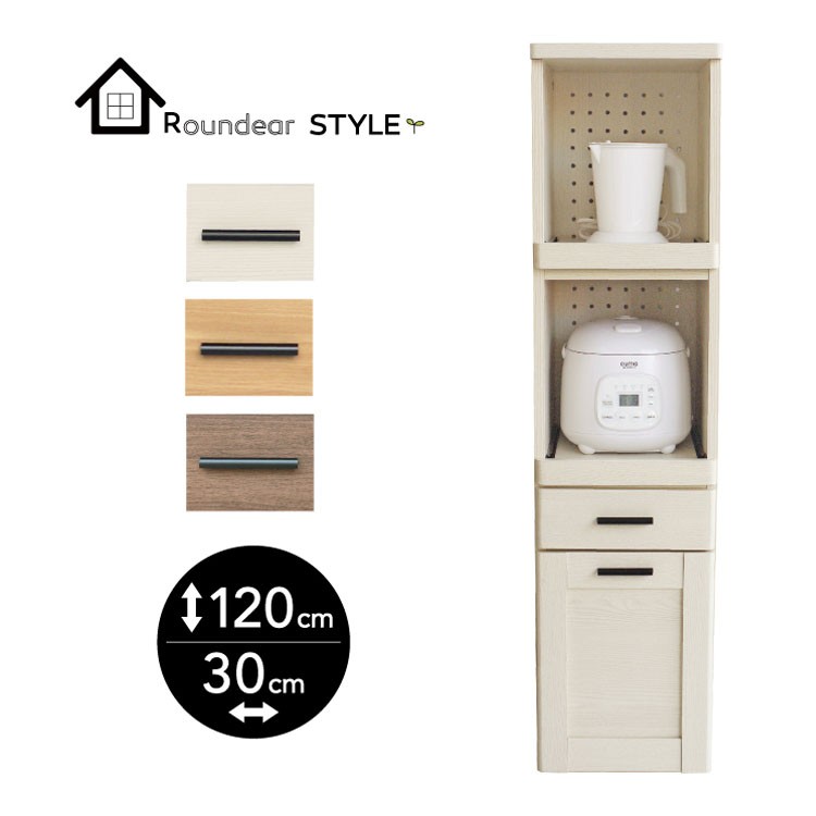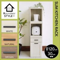 キッチン すき間収納 スリムラック ラウンディア kc-w008 幅30cm 高さ120cm コンセント おしゃれ 木製 北欧 奥行40 炊飯器 スリム食器棚 ruk