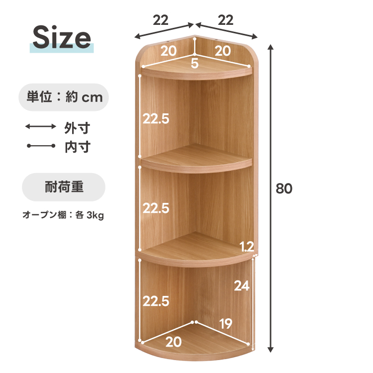 ◆本体外寸:幅約22×奥行約22×高さ80cm(突っ張り金具取付時83~101)