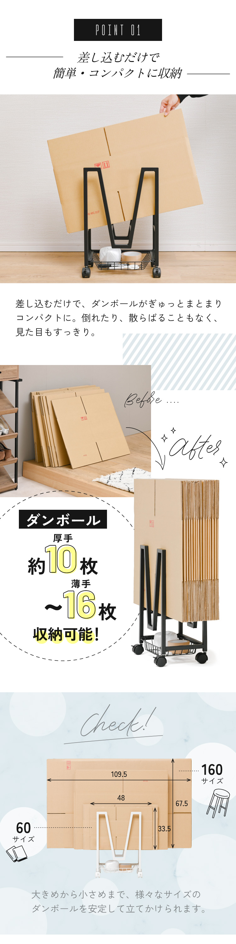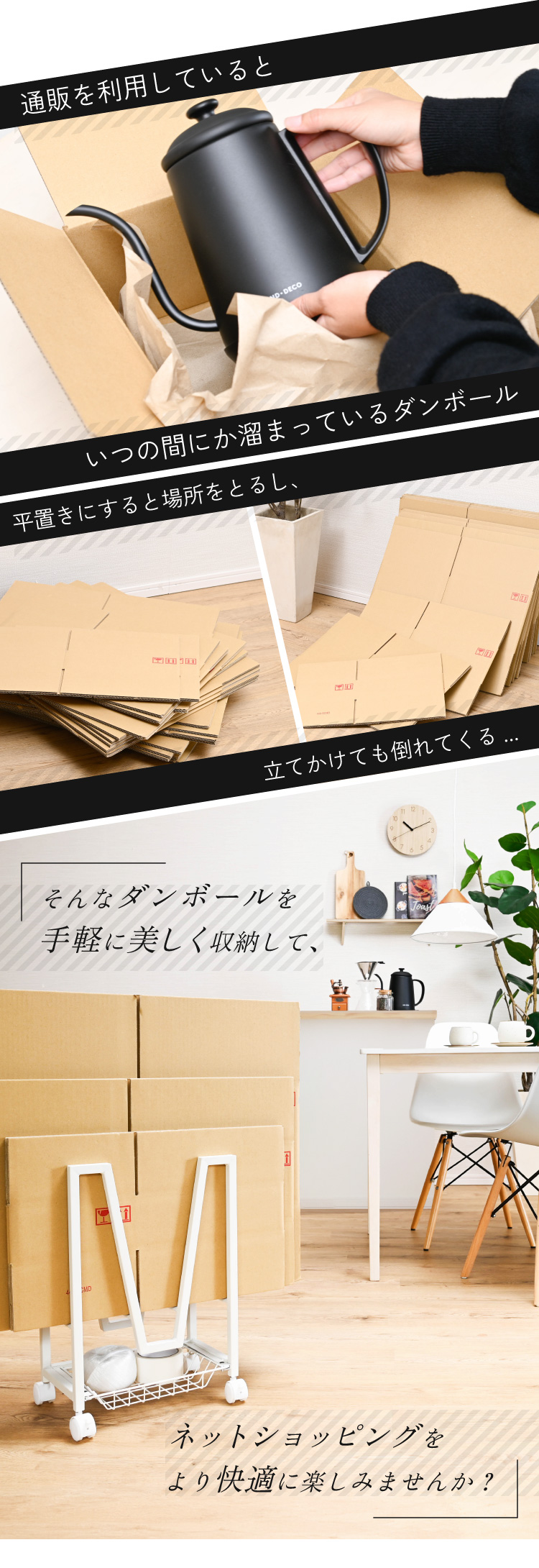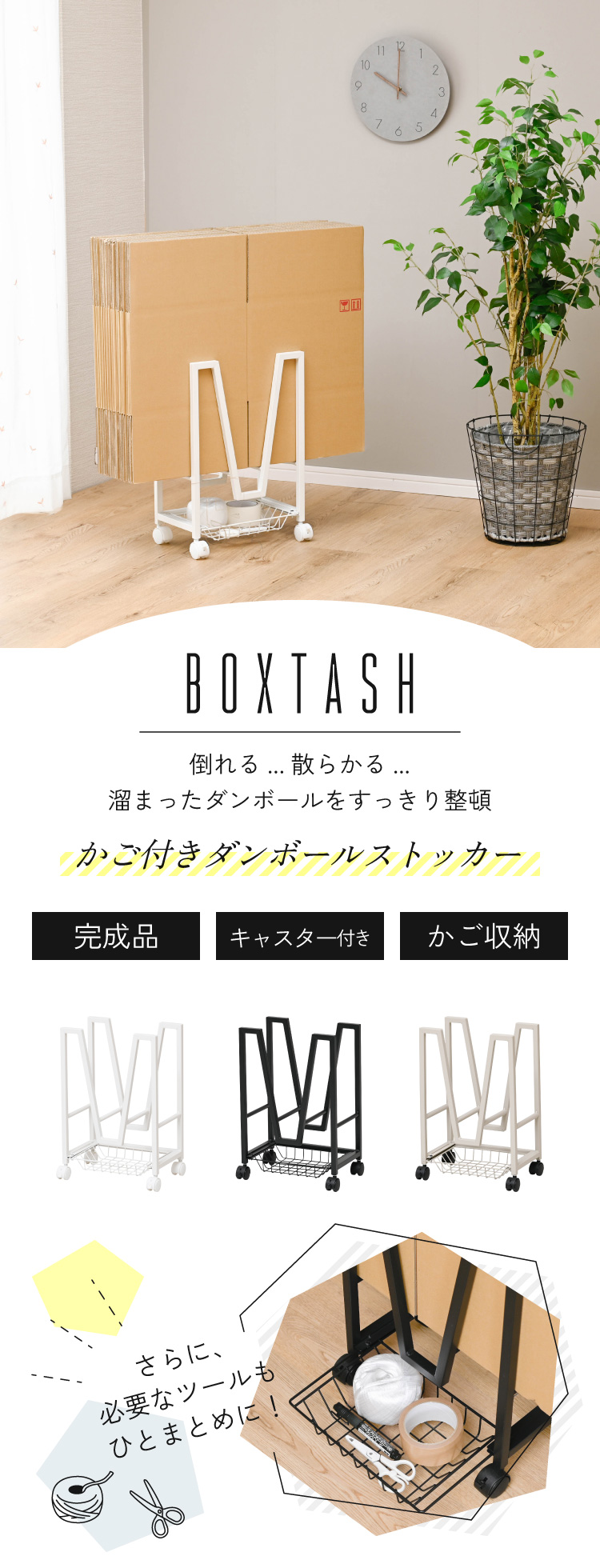 商品名 Boxtash かご付きダンボールストッカー