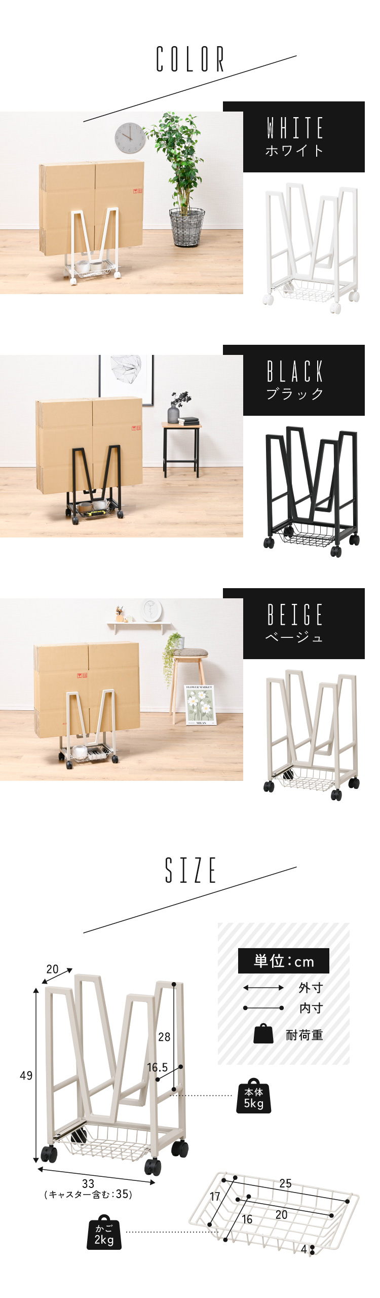 サイズ ・本体外寸:幅約33(キャスター含む35)×奥行約20×高さ約49cm
