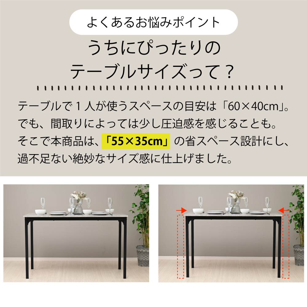 | サイズ | ・テーブル 外寸:幅約110×奥行約70×高さ約72cm 天板下内寸:幅約91(最大102)×奥行約56×高さ約61(最大66.5)cm ・チェア 外寸:幅約40×奥行約47×高さ約87cm 座面:幅約40(最大39)×奥行約36×高さ約43.5(最大45.5)cm |