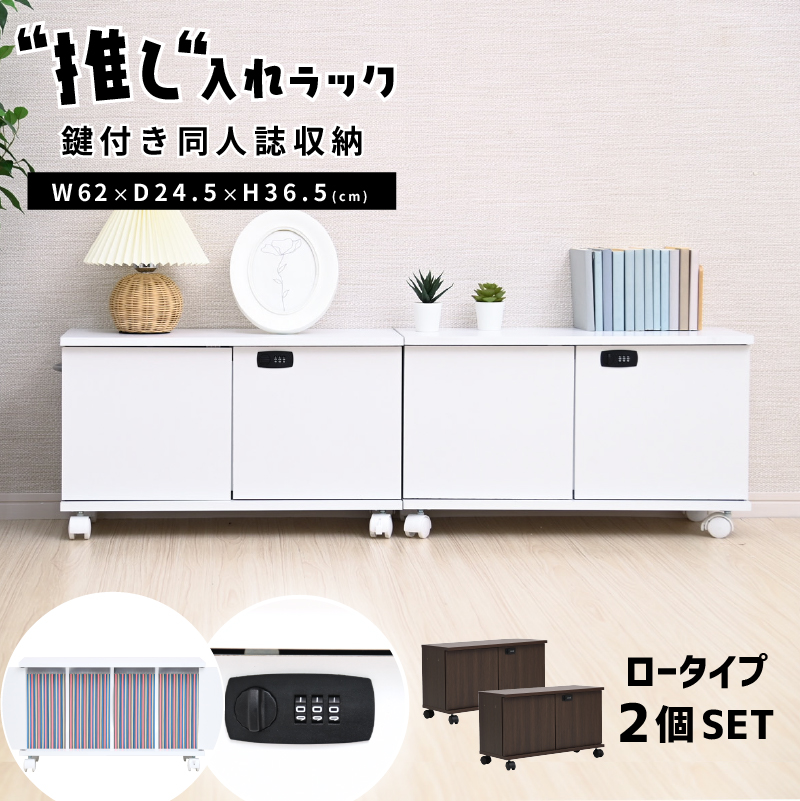 同人誌ラック ロータイプ 2個セット ダイヤル鍵付き 同人紙 本棚 コミックラック B5 木製 押入れ収納 推し活 薄い本 収納棚 キャスター付き