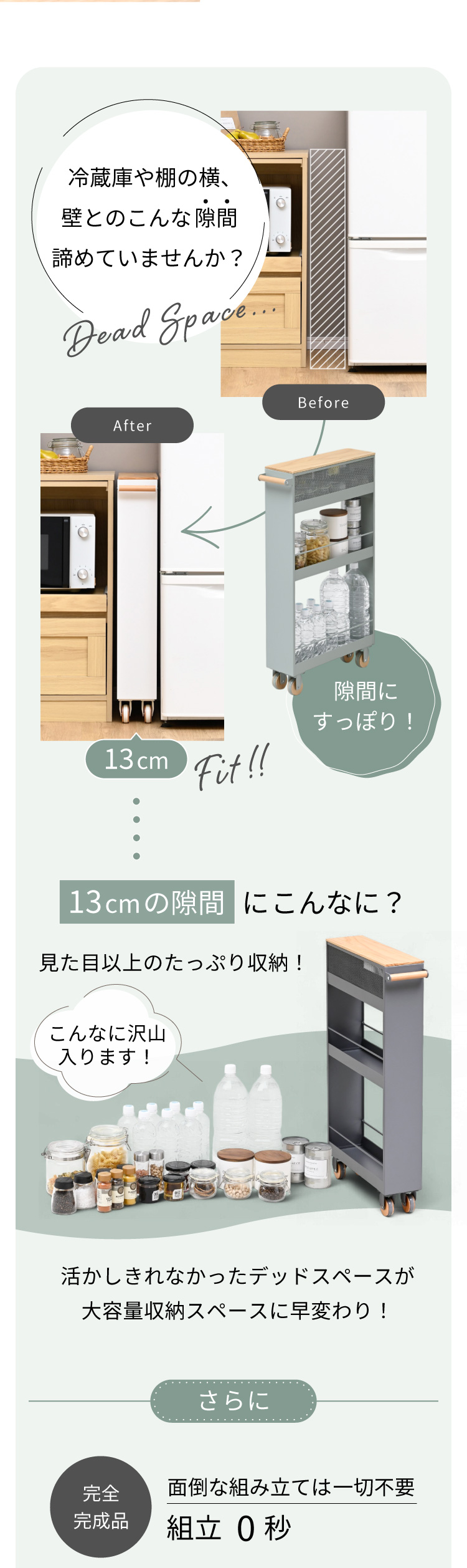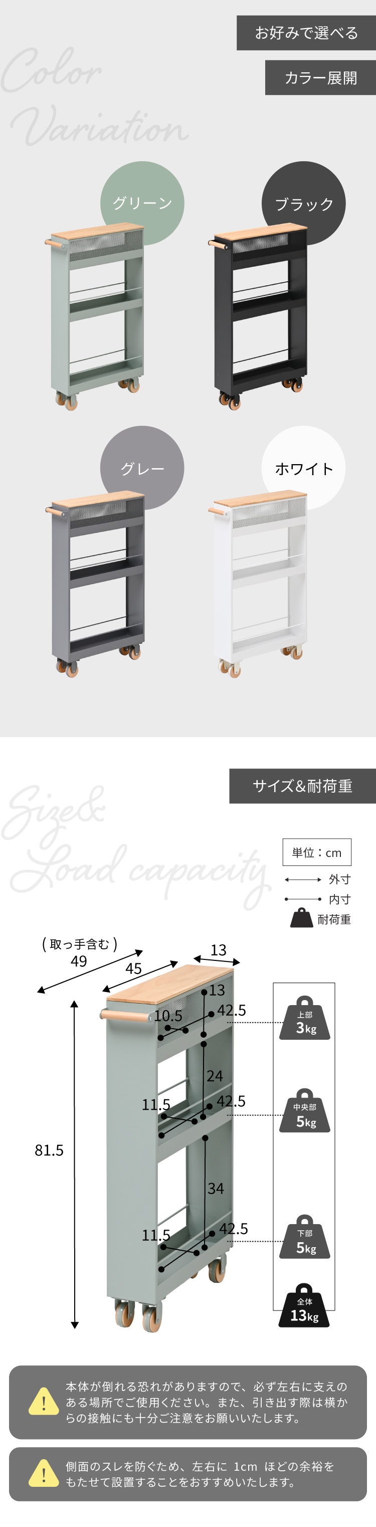 | サイズ | ・本体外寸:幅約13×奥行約45(取っ手を含む奥行約49)×高さ約81.5cm |