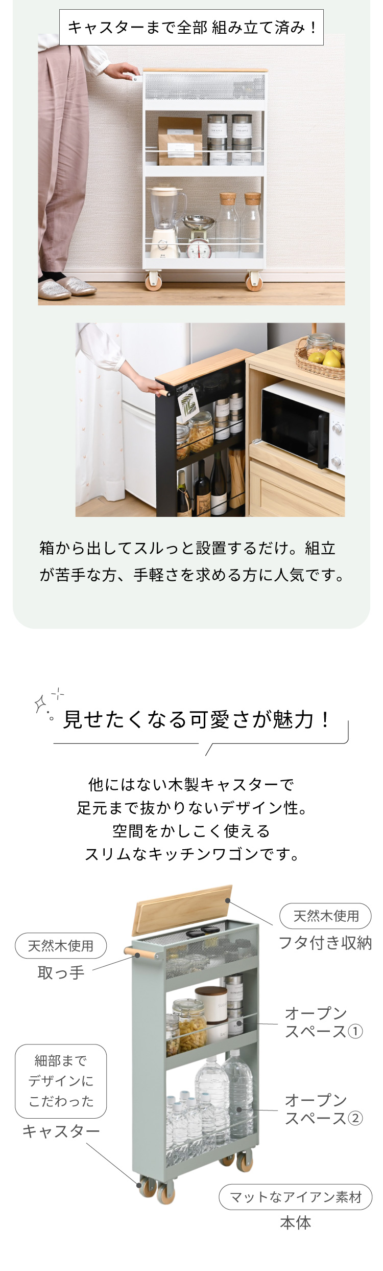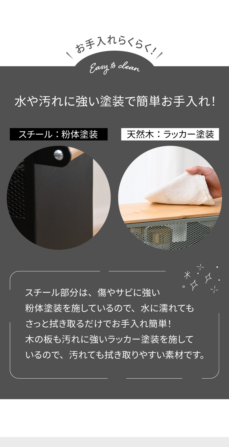 | 備考 | ・完成品です。箱から取り出してすぐにお使いいただけます。 ・本体が倒れる恐れがありますので、必ず左右に支えのある場所でご使用ください。また、引き出す際は横からの接触にも十分ご注意をお願いいたします。 ・側面のスレを防ぐため、左右に1cmほどの余裕をもたせて設置することをおすすめいたします。 ・お使いのモニターによって商品の明るさや色が多少異なって見える場合がございます。 ・配送料金は地域により異なる場合があります。 ・商品の仕様は予告なく変更になる場合があります。 ・本商品は当店オリジナル商品です。 |