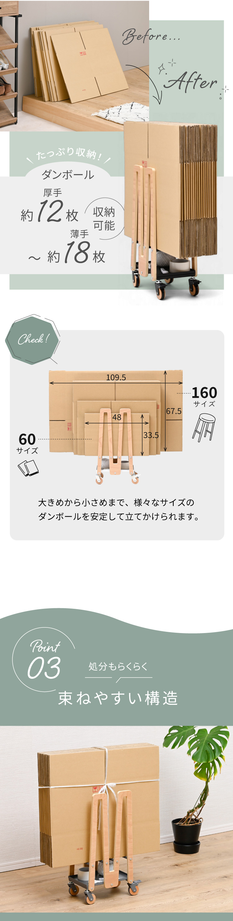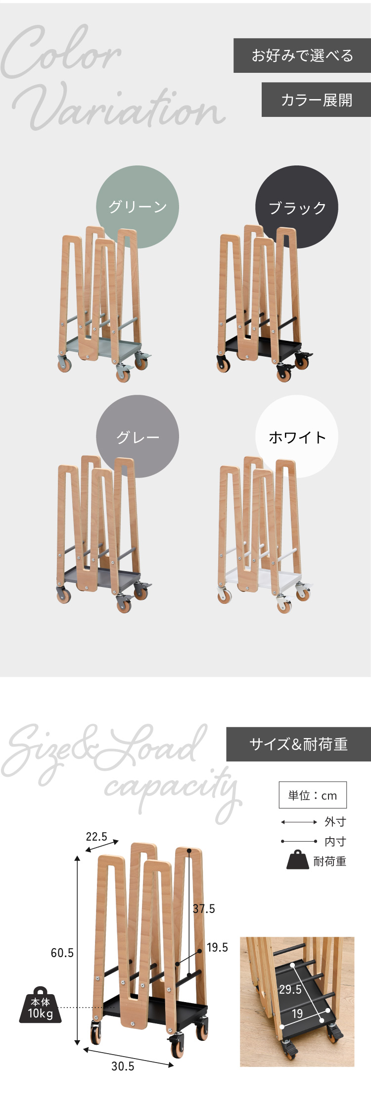 | サイズ | ・本体外寸:幅約30.5×奥行約22.5×高さ約60.5cm ・ダンボール置きスペース内寸:奥行約19.5×高さ約37.5cm ・トレー内寸:幅約29.5×奥行約19cm |