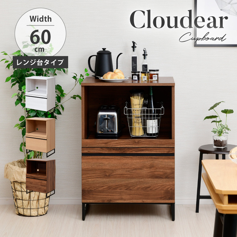 Cloudear ミニ レンジ台 レンジボード スライドテーブル 幅60cm 食器棚 炊飯器ラック レンジラック 一人暮らし コンパクト キッチン収納