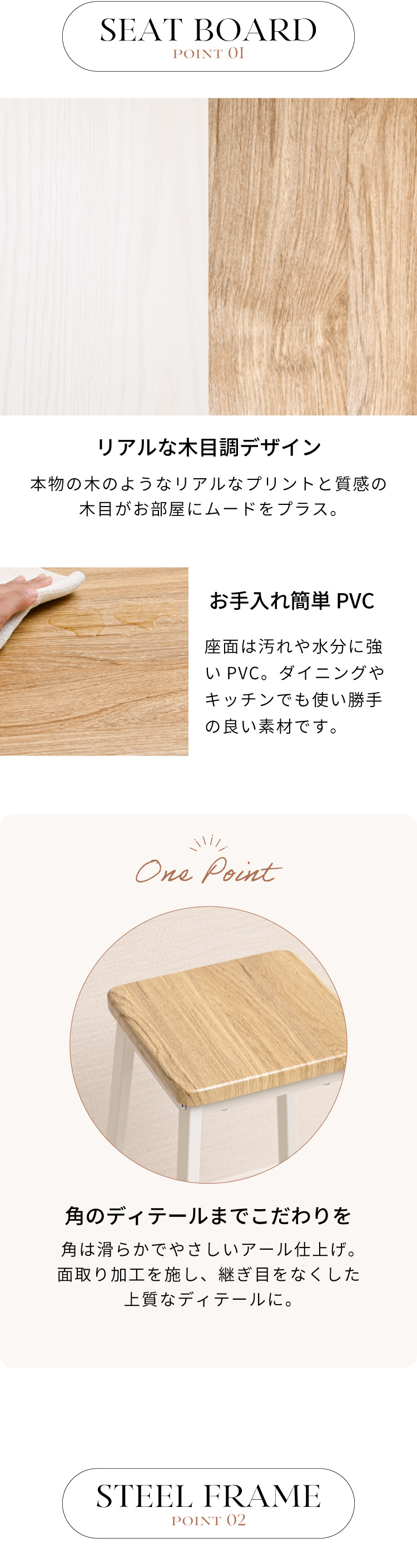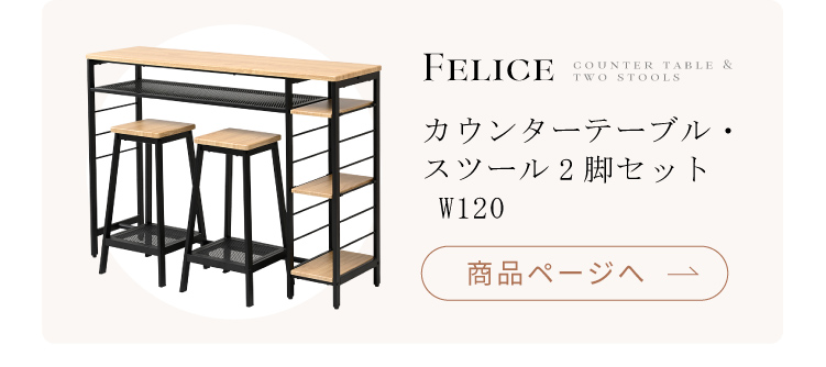 | 材質 | 【カウンターテーブル・スツール】 ・座面:合成樹脂化粧繊維板(PVC) ・脚部:鉄 |
