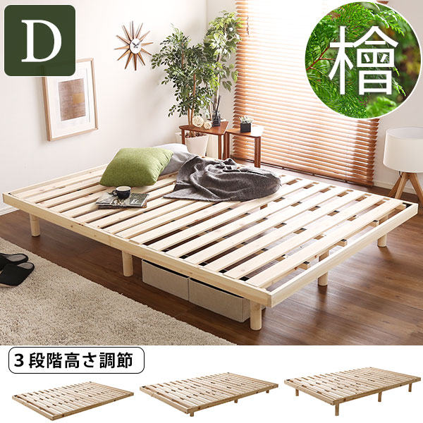 国産ひのきが香る すのこベッド ダブル / 脚付きベッド 木製 無垢 天然木 フレーム 継脚 高さ調節 ノンホルムアルデヒド ロータイプ ハイタイプ 北欧 n1