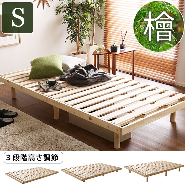 国産ひのきが香る すのこベッド シングル / 脚付きベッド 木製 継脚 高さ調節 ノンホルムアルデヒド 北欧 組み立て ベッドフレーム 布団 無垢材 n