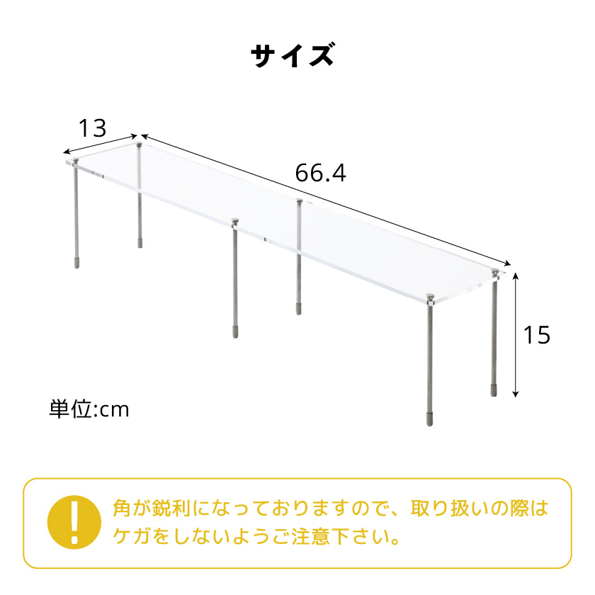 アクリル板(約)・(幅:664mm) (奥行:130mm) (厚み:5mm)スタンド脚(約)・150mm【重量】