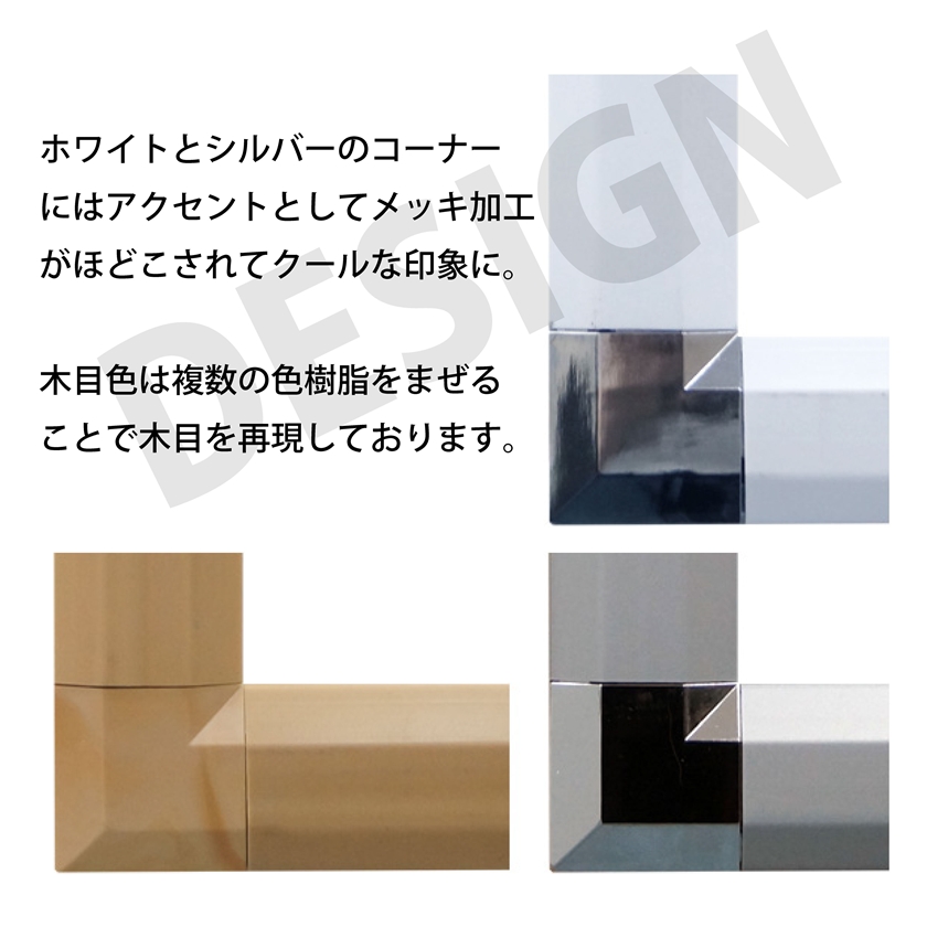 ※木目色の木目は樹脂の混合によって再現しています。フレーム及びコーナー部分で模様と色の差が生じてしまう可能性がございます。