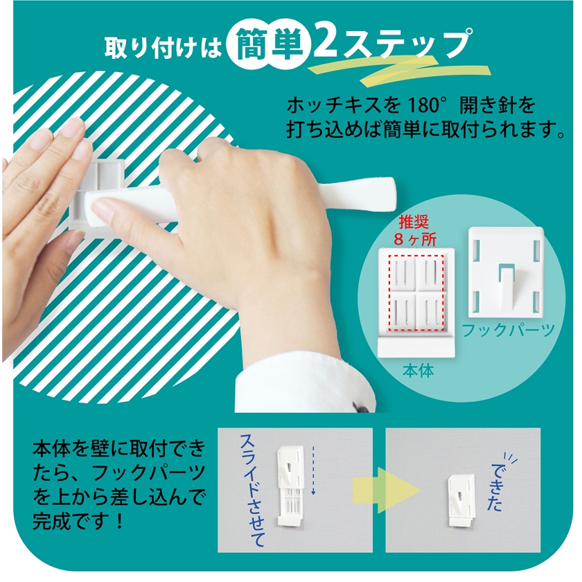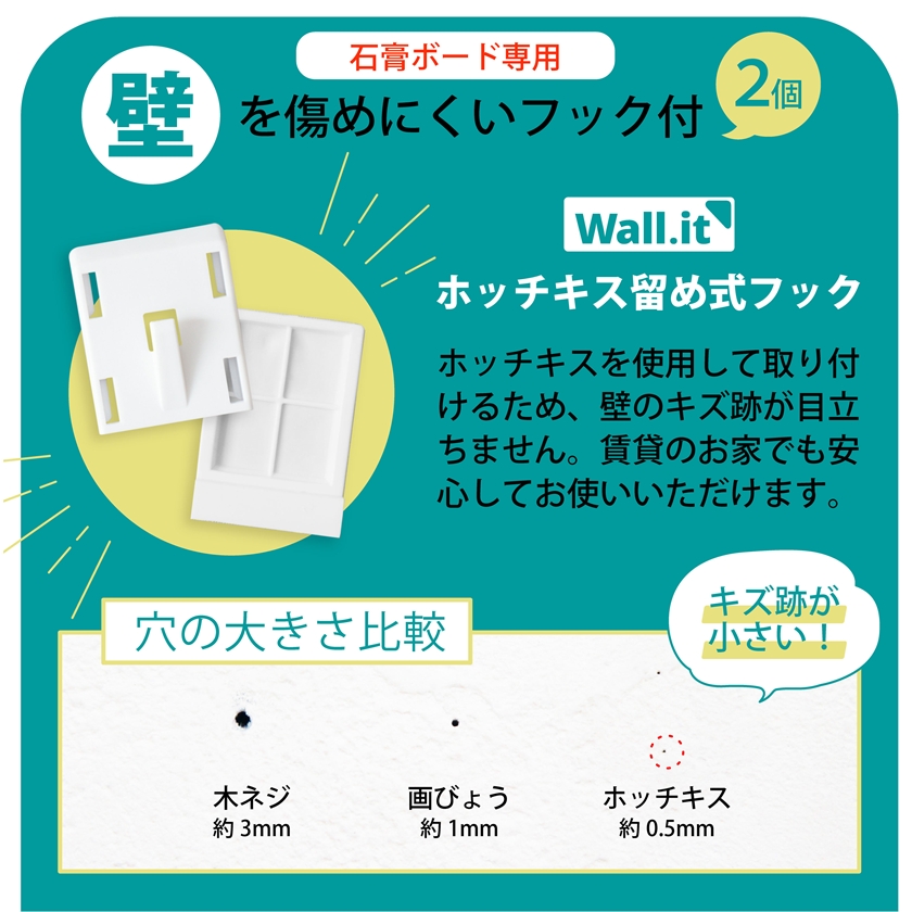 ※付属の壁掛けフックは石膏ボード専用です。石膏以外の壁の場合、うまく固定できない可能性がございます。
