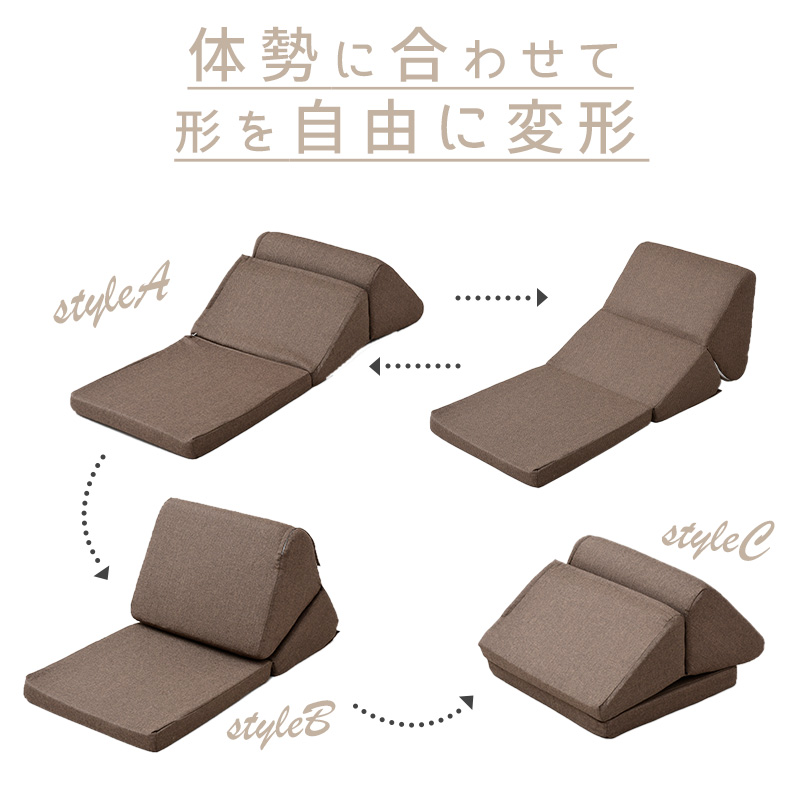 形を自由に変形 フロアクッション 日本製 テレビまくら ごろ寝マット 折りたたみ 3way ウレタン クッション 座椅子 背もたれ 変形 軽量 コンパクト