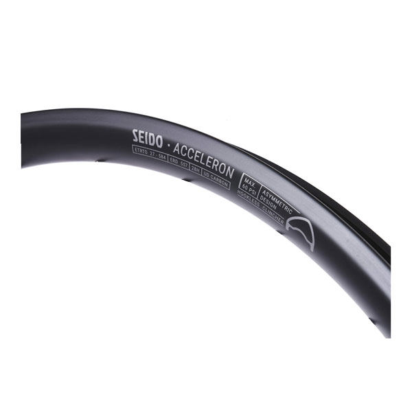 ●左右非対称形状でスポークテンションを左右で同一に近付け耐久性と反応性を向上。