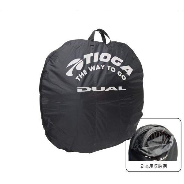 車載時に車内を汚さない、2 本用250g の軽量なホイール収納袋。700C 又は26" ホイールをタイヤをつけたまま入れられます。