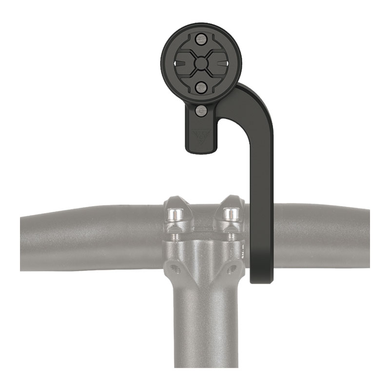 クランプ径Φ25.4 〜 31.8mm のハンドルバーに取り付ける片持ち式マウント。ハンドル前方中央にガーミン などのサイクルコンピューターなどを 装着できます。下部にはGoPro マウント付きのフロントライトやカメラなどを取り付けられます。