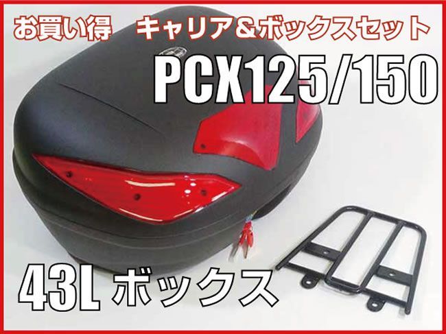 1年保証付き PCX 新型PCX125 PCX150用リアキャリア リアボックスセット43L wca-07-hwb-43