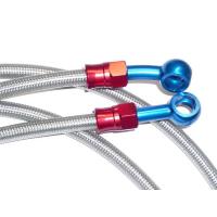 アールズやグッドリッジと同等の耐圧性能を持ったホースですので抜群のブレーキタッチが得られます。 プロテクターは摩擦抵抗の少ないPVCチューブ(透明タイプ)を被せていますので他のパーツを傷つけたりホースが傷んだりということが最小限に抑えられます。 アルミ製バンジョーは片方がストレート、もう片方が20°のアングルタイプとなっていますので大抵の車種に適合します。 バンジョーボルトの穴は10mmです。アールズと同じサイズのバンジョーです。