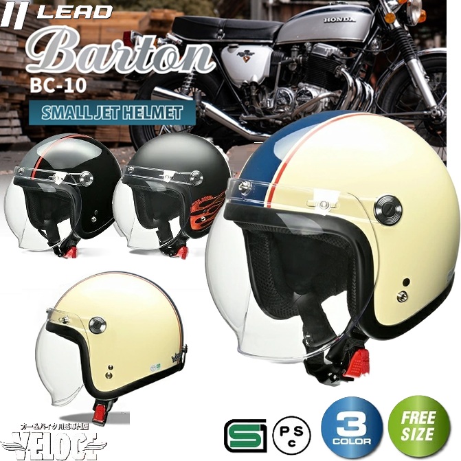 リード工業 バイクヘルメット LEAD BC10 シールド付き スモールジェットヘルメット BARTON