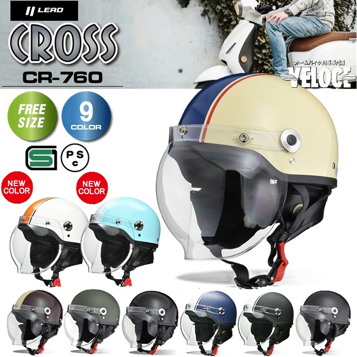 LEAD リード工業 CROSS バブルシールド付き ハーフヘルメット CR760(57-60cm未満)カラー選択可能