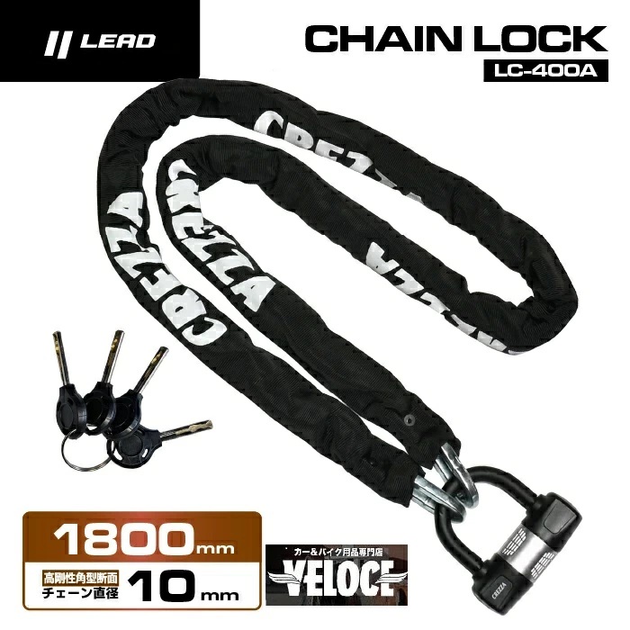 リード工業 LEAD LC400A チェーンロック ブラック 10X1800mm【4952652041190】バイク用 CREZZA-V