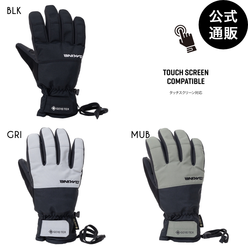 GORE-TEX® インサートと高い保温性を誇るハイロフトインサレーションを採用し、極寒のコンディションにも対応する日本限定のグローブ。手のひら部分にはグリップ力と耐久性に優れたポリウレタン素材を、アウターシェルにはPFCフリー耐久撥水加工を施したリサイクルポリエステルを使用。裏地には柔らかなフリース素材を採用し、快適な着用感と保温性を実現しています。手首のフック&ループ式カフクロージャーでフィット感を自在に調整でき、タッチスクリーン対応により装着したままスマートフォンの操作も可能。甲には立体的なDAKINEロゴ刺繍、手首にはGORE-TEXロゴをあしらったデザインです。