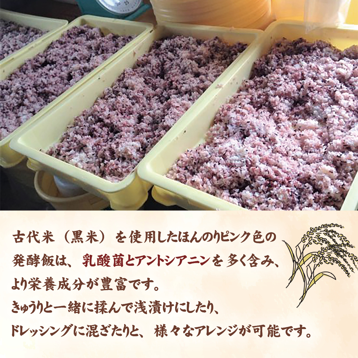 | 商品説明 | 「鮒ずし(ふなずし)」とは、琵琶湖固有種のニゴロブナを使うなれ鮨の一種で、古くから滋賀県に伝わる郷土料理です。 塩漬けしたニゴロブナをお米と一緒に樽に入れて熟成させると、乳酸発酵により骨まで柔らかい美味しいふなずしが出来上がります。 このふなずしを作る際に一緒に漬け込んだご飯のみを商品にしました。 ふなずしを作る際に一緒に漬け込んだご飯のみを商品にしました。 ふなずしの旨味をたっぷり吸収したご飯には、10g中2億8千万個の生きた乳酸菌が存在しています。 古代米(黒米)を使用したほんのりピンク色の発酵飯は、乳酸菌とアントシアニンを多く含み、より栄養成分が豊富で不老長寿の米として献珍米として使われてきました。 そのままお召し上がりいただくほか、きゅうりと一緒に揉んで浅漬けにしたりクリームチーズと合わせてクラッカーにのせたりと、様々なアレンジでお楽しみ頂けます。是非この機会にお試しください。 ※産地直送の商品となる為、本にごろ鮒専門 飯魚以外の商品との同梱、代引きが出来かねます。 ※内容は事前の予告なしに変更になる場合がございます。 |