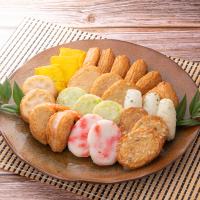 | 原材料名 | 魚肉(イトヨリダイ、スケトウダラ、とび魚、その他)、でん粉、砂糖、ごぼう、かぼちゃ、卵白、れんこん、キャベツ、えび、米発酵調味料、食塩、グリーンピース、豆腐、玉ねぎ、チーズ、灰持酒(薩摩地酒)、人参、生姜、山芋、大葉、菜種油/調味料(アミノ酸等)、保存料(ソルビン酸(K))、酸味料、着色料(赤102) ※一部に卵、大豆、乳成分、やまいもを含む。 |