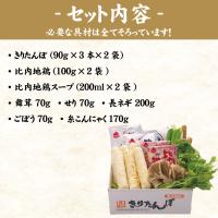 比内地鶏、舞茸、セリ、長ネギ、ごぼう、糸こんにゃくの全部入りで買い足し不要のきりたんぽ鍋セット