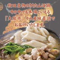 | 原材料名 | [きりたんぽ]うるち米(秋田県産)、食塩[鶏肉]比内地鶏(秋田県産)[スープ(希釈用)]鶏ガラ、しょうゆ(大豆・小麦を含む)、食塩、ゼラチン、調味料(アミノ酸等)[その他]長ネギ、舞茸、セリ、ごぼう、糸こんにゃく |