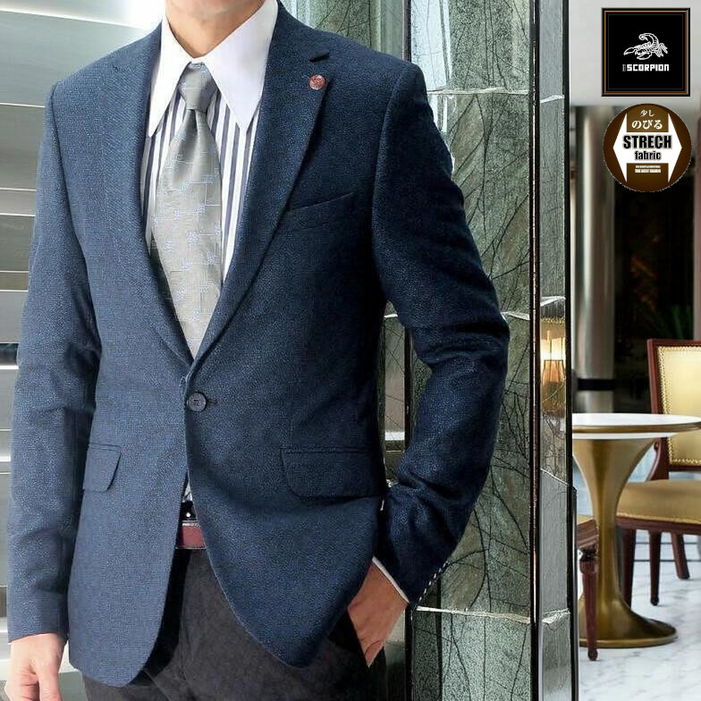 テーラードジャケット ブレザー メンズ ストレッチ メンズ 青 ブルー黒 ジャケパン 一つボタン 細身 タイト シルエット