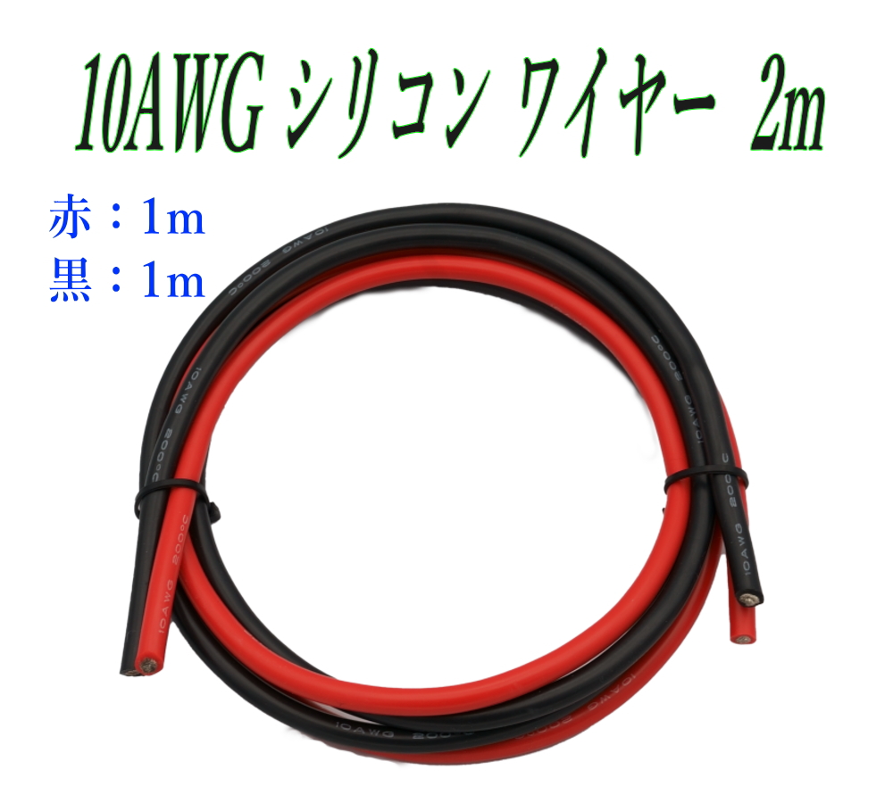 10AWG シリコン軟線ワイヤー 電源ケーブル 錫メッキ銅線 2m (赤 1m 黒 1m) バッテリーケーブル