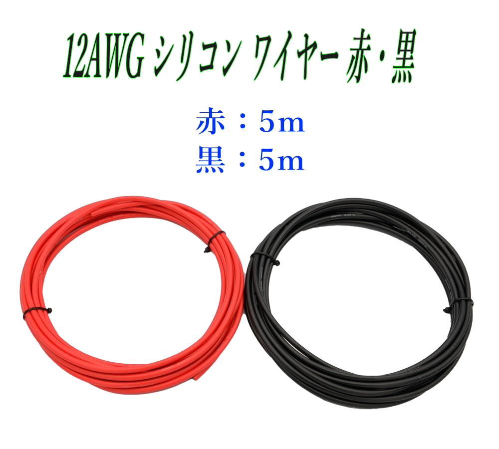 12AWG シリコン軟線ワイヤー 電源ケーブル 錫メッキ銅線 10m (赤 5m 黒 5m) バッテリーケーブル
