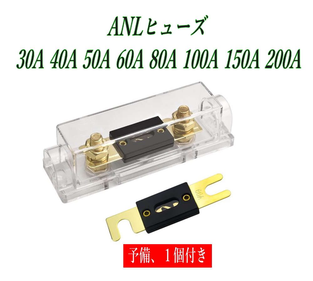 ANLヒューズ, ANL FUSE, 30A, 40A, 50A, 60A, 80A, 100A,150A,200A, ヒューズホルダー, バッテリー保護, 大電流,カーオーディオ, アンプ保護, パワーインバーター, ソーラー, DC配線, 車中泊, 船舶, キャンピングカー, 電装品保護, バッ直, 予備ヒューズ付き,交換用ヒューズ, メインヒューズ, 低抵抗, 高耐久, メンテナンス, 電源ライン, カスタム, DIY