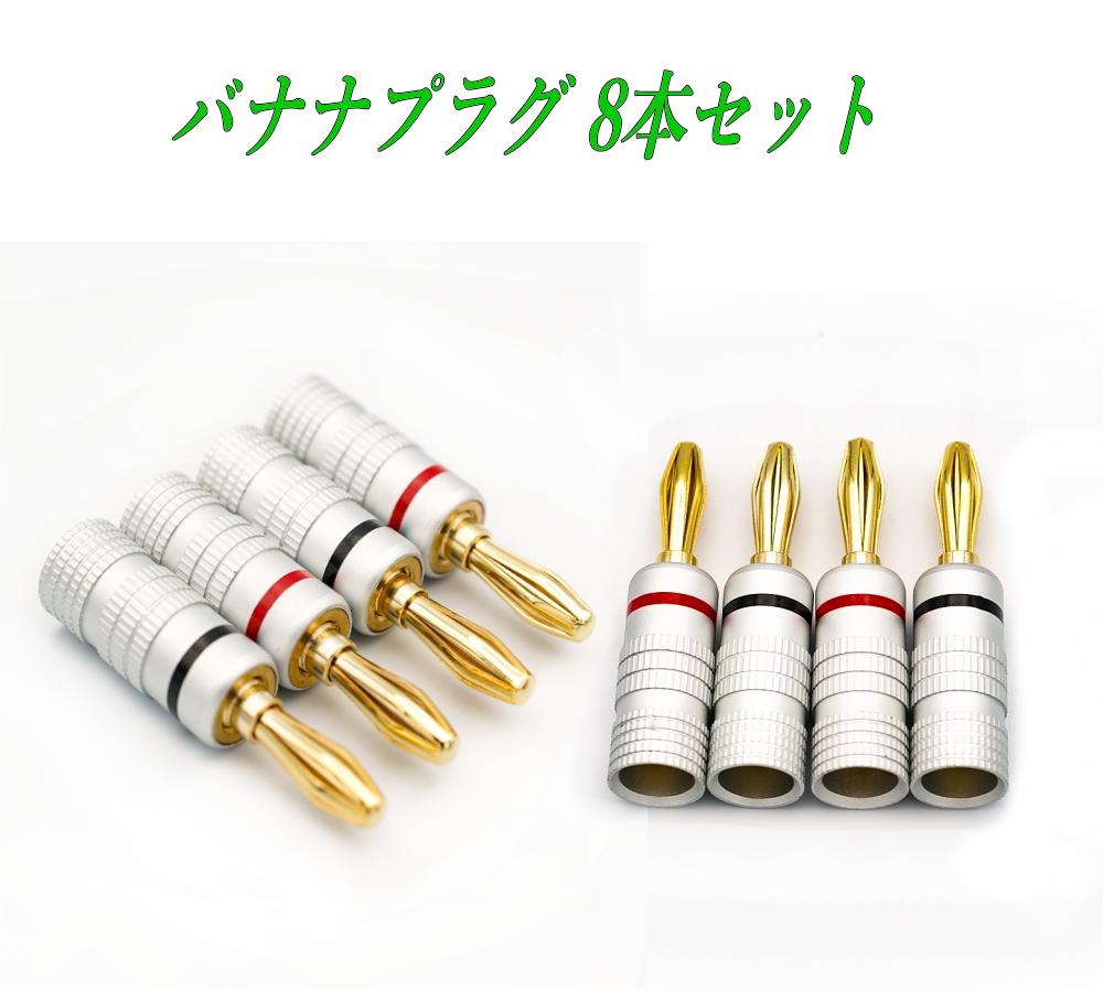 バナナプラグ 金メッキ 8本 赤と黒 スピーカープラグ