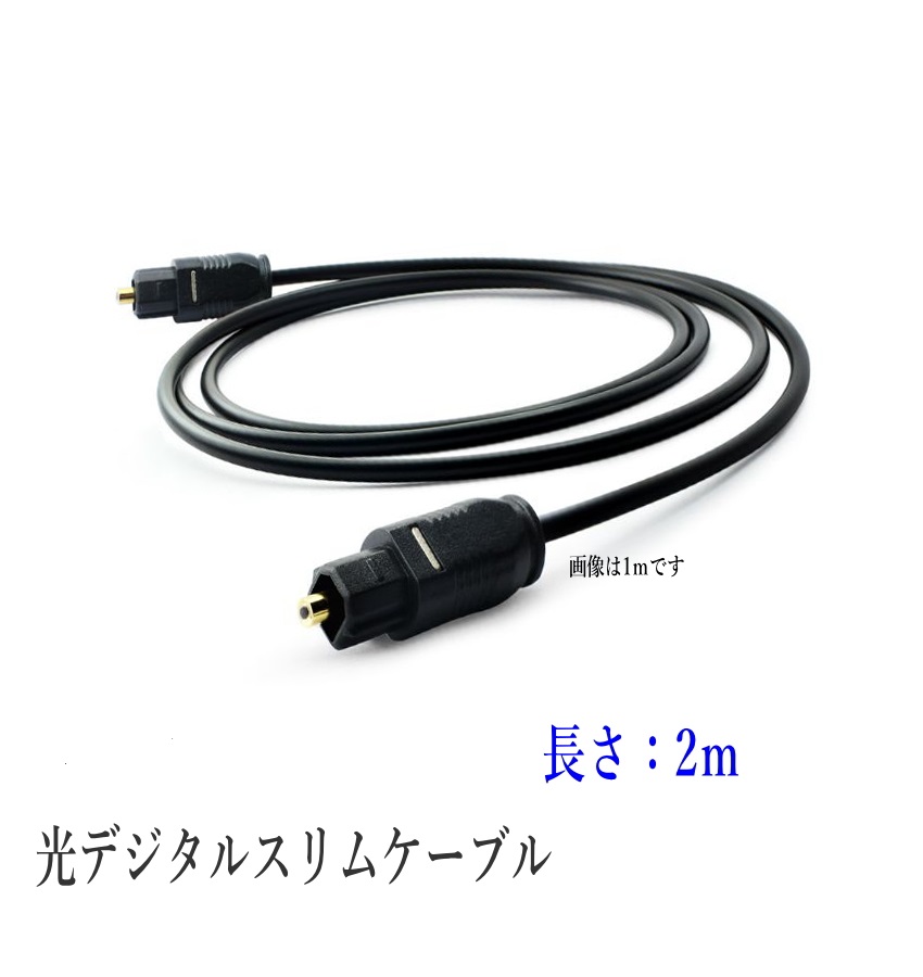 光デジタルケーブル 2m 光ケーブル スリムタイプ TOSLINK 角型プラグ オーディオケーブル