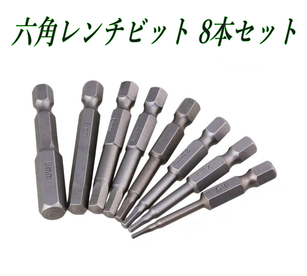 六角レンチビット, 六角ビット, 六角ドライバービット, 8本セット, 6.35mm, 1/4インチ, 50mm, S2鋼, マグネット, 磁気吸着, インパクト対応, 電動ドライバー, 電動ドリル, 精密ドライバー, ビットセット, 1.5mm, 2mm, 2.5mm, 3mm, 4mm, 5mm, 6mm, 8mm, 交換ビット, ネジ締め, 先端工具, 作業効率, DIY, メンテナンス, 工具セット