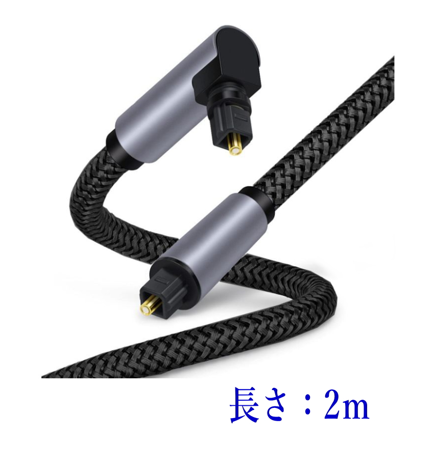 光デジタルケーブル L型 2m オーディオケーブル 光ケーブル SPDIF TOSLIN 角型プラグ 360°回転