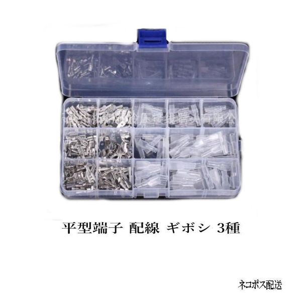 平型端子 配線 ギボシ 3種、オス端子、メス端子、メス絶縁スリーブセット 合計270個セット