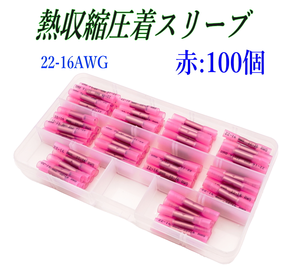 熱収縮圧着スリーブ 赤 100個 22-16AWG 防水圧着端子 配線接続 絶縁端子 ケース入り