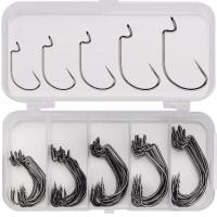 オフセットフック 5サイズ 50個 専用ケース付き 針 釣り針 釣針 フック 仕掛け 釣り具 釣り