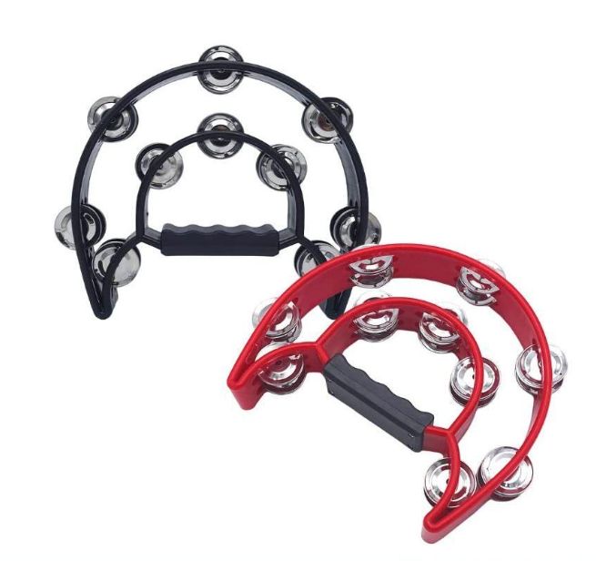 タンバリン 半円型 打楽器 パーカッション カラオケ パーティー 盛り上げる (ブラック&レッド&ブルー)
