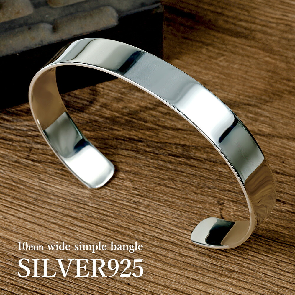 定番 10mm幅 プレーン バングル 平打ち シルバー925 アクセサリー シンプル ブレスレット メンズ シルバーブレスレット