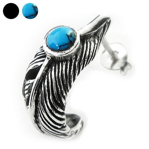 フェザーフープピアス ターコイズ オニキス メンズ リングピアス シルバー925 アクセサリー ウイング フェザー 羽 翼 シルバーピアス 片耳用 (1個売り)