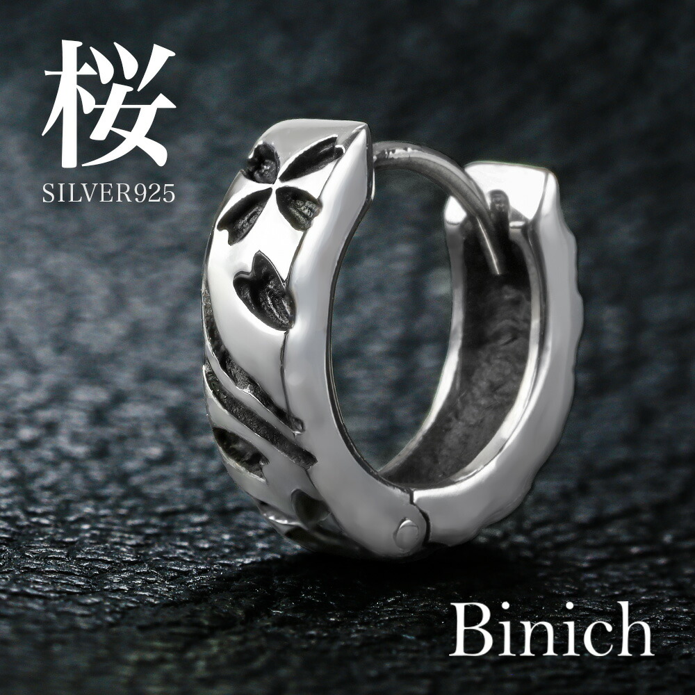 サクラサクフープピアス シルバー925 アクセサリー 和柄 桜 さくら メンズ リングピアス 男性 シルバーピアス 片耳用 (1個売り)