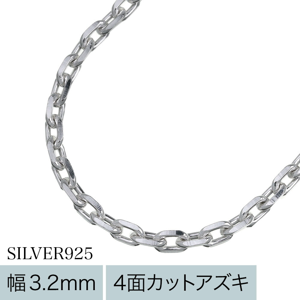 標準 3.2mm4面カット アズキ チェーン ネックレス 45cm 50cm 60cm メンズ 小豆 チェーン シルバー925 アクセサリー シルバーチェーン